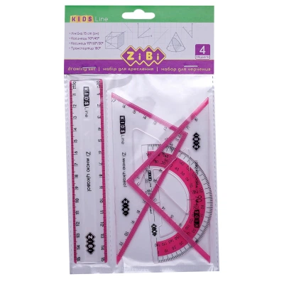Лінійка ZiBi Комплект: Лінійка 15см, 2 косинця, транспортир, з рожевою смужкою (ZB.5687-10)