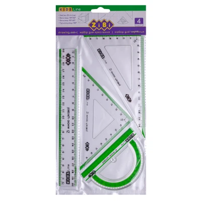Лінійка ZiBi Комплект: лінійка 20см, 2 косинці, транспортир, із салатовою смужкою (ZB.5680-15)