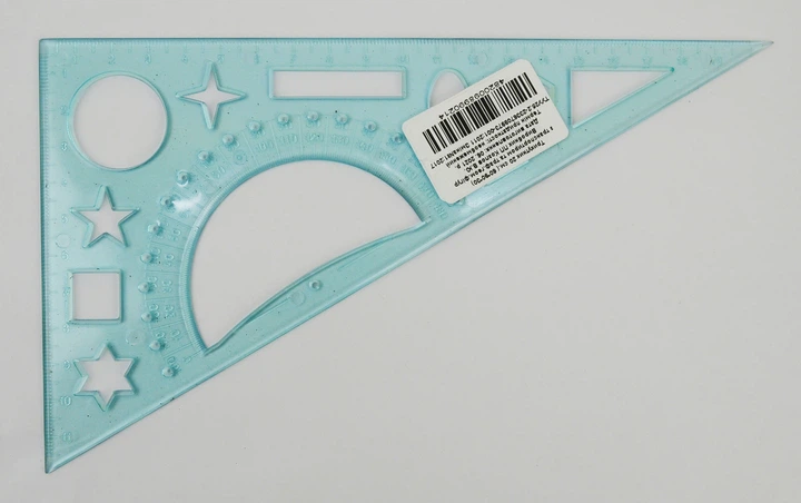 Трикутник, 20 см, 60°/90°/30°, з транспортиром, 5 шт. в упаковці