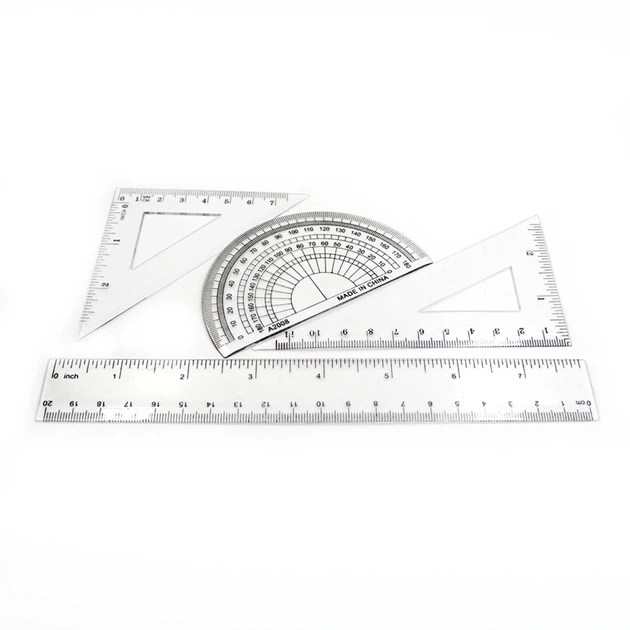 Набір для креслення, лінійка 20 см, транспортир, 2 трикутники, пластик, 4 предмети, 5 шт. в упаковці