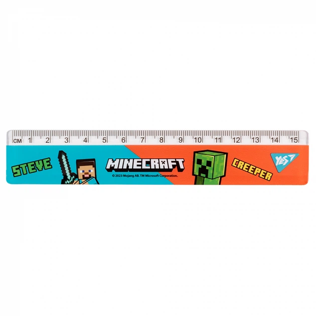 Лінійка YES Minecraft, 15 см, блакитно-червона, 10 шт. в упаковці