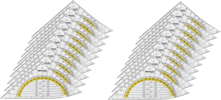 Набір прозорих геометричних трикутників Westcott, 14 см, 20 шт.