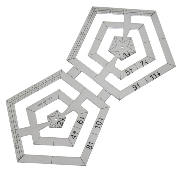 Лінійка для печворку та квілтингу "Подвійний п'ятикутник" загальна довжина 22 см (6906)