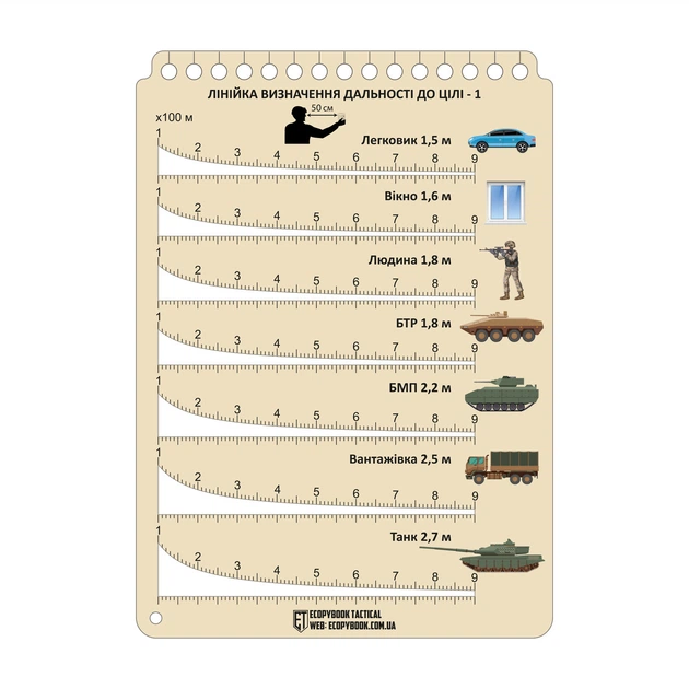 Лінійка визначення дальності до мети прозора гнучка матова 15х11 см Ecopybook Tactical, 9062490