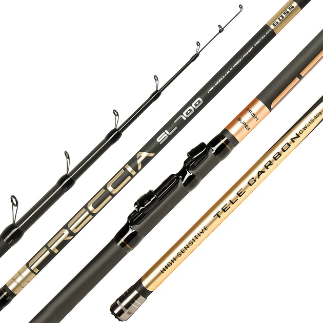 Вудка телескопічна болонська 7 метрів з кільцями Goss Freccia Gold Original карбон тест 15-40 гр