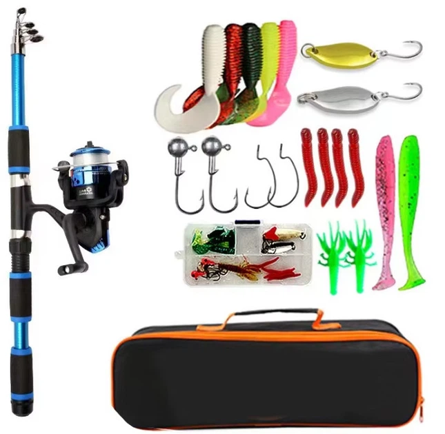 Набір для рибалки Телескопічна вудка з котушкою та приманками 30 в 1 У чохлі
