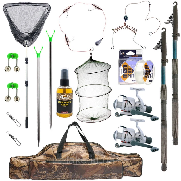Набір універсальний з двома спінінгами 2.1м з котушками, оснащенням і підсаком у чохлі 80 см