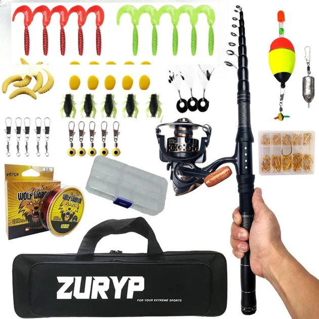 Карбонова телескопічна вудка спінінг з котушкою аксесуарами 2,7 метра