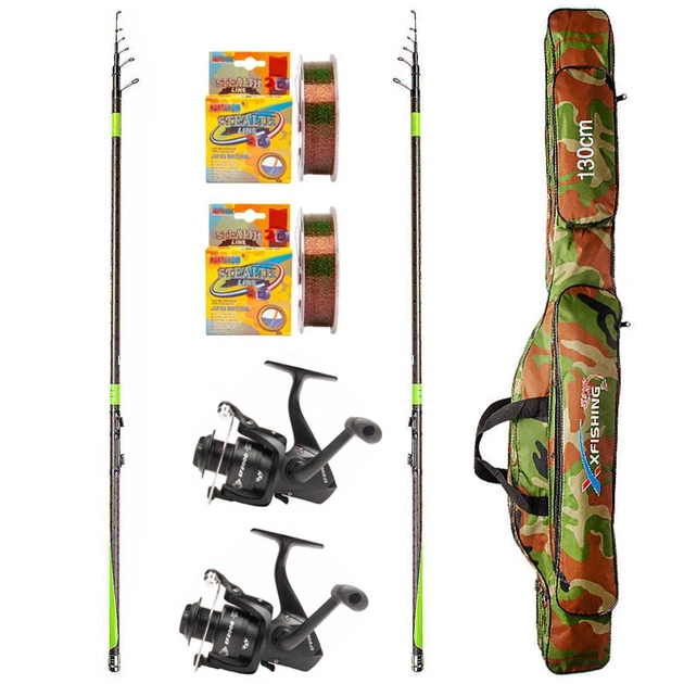 Комплект для риболовлі 2 карбонові вудки Freccia 5 м тест 15-40 швидкий буд котушки EF2000 волосінь 3D 100 м чохол 2 відділу