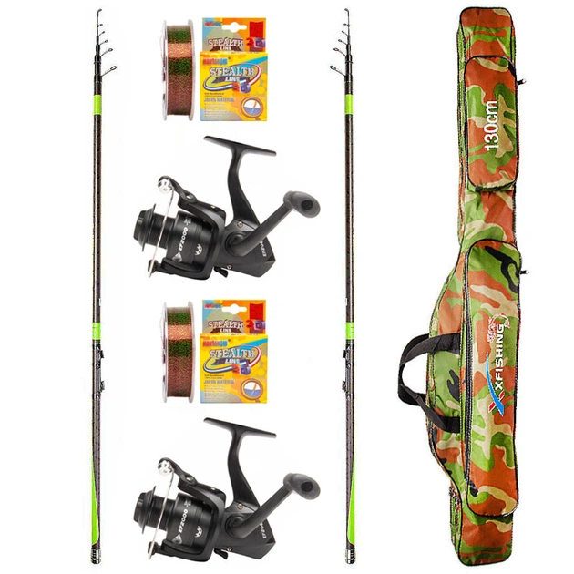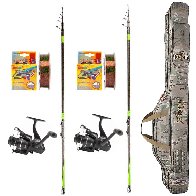 Набір для риболовлі 2 вудки Freccia 6 м карбон тест 15-40 швидкий строй котушки EF2000 волосінь 3D 100 м каркасний чохол 135
