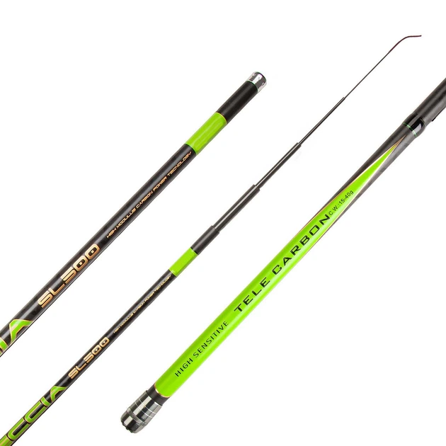 Карбонова вудка телескопічна з кільцями, 5 м, тест 10-30 г, середній лад, SIC-вставки