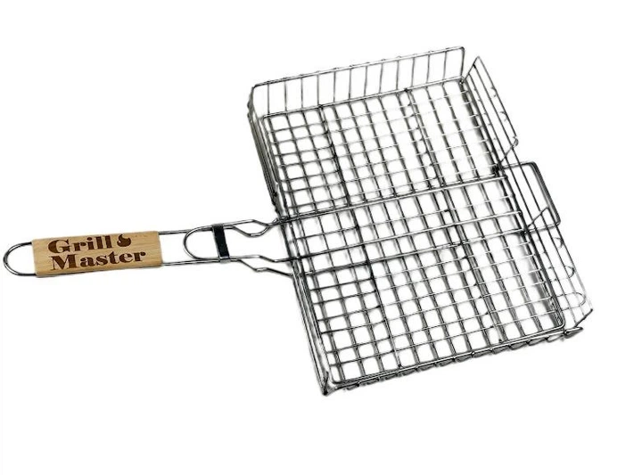Універсальна решітка для гриля та барбекю 433266 см з ручкою з дерева сітка для мангалу для риби, м'яса та овочей