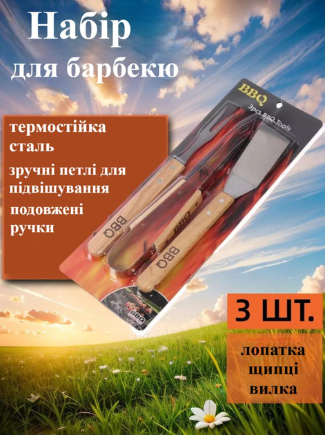 Набір для гриля та барбекю BBQ 3в1 нержавіюча сталь довгі ручки