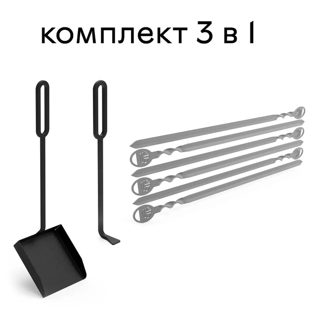Комплект 3 в 1: совок, кочерга та шампура 6 штук 1.5 мм