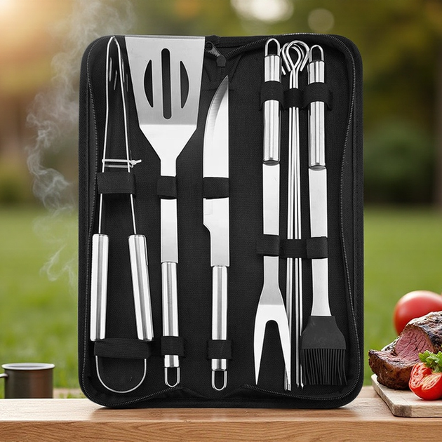 Набір для гриля барбекю шашлику з шампурами в чохлі 9в1