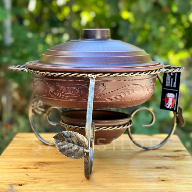 Садж блюдо для подачі шашлика Вітой з глиняним посудом Жаровня 2,5л база