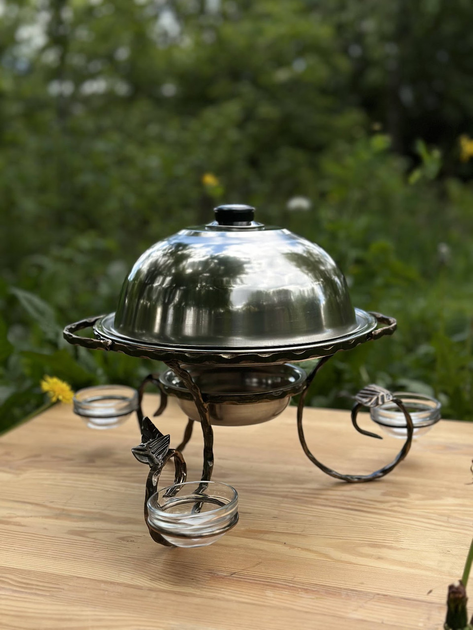 Садж блюдо для підігріву шашлику 36см кований (+ соусники) виноградна лоза