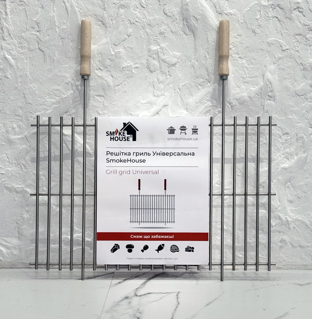 Універсальна решітка гриль для стаціонарних мангалів Smoke House Grill Grid 530х350 мм нержавіюча сталь ручки з дерева