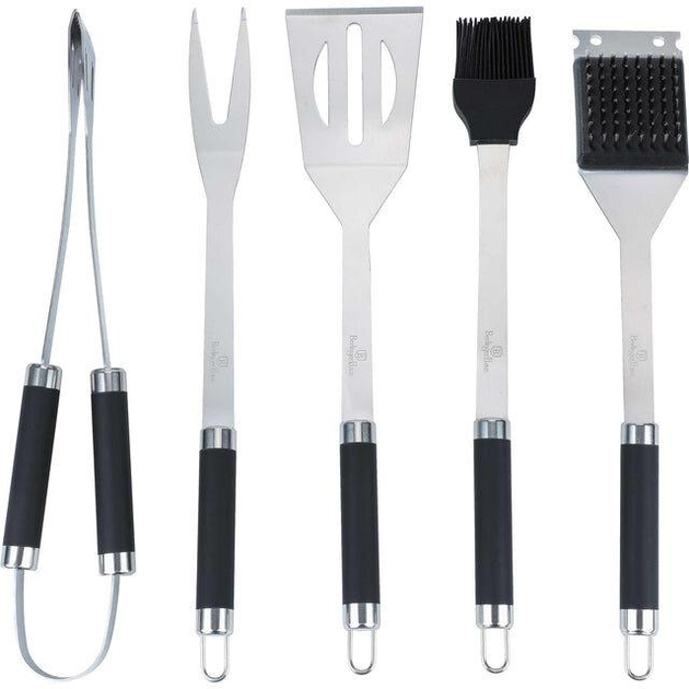 Набір аксесуарів для гриля 6 предметів Berlinger Haus вилка, лопатка, щипці, пензлик, щіточка та фартух нержавіюча сталь