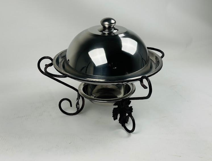 Садж для подачі шашлику VIP з кришкою 36 см SJ-6568 виноградний лист нержавіюча сталь (83-10-6568)