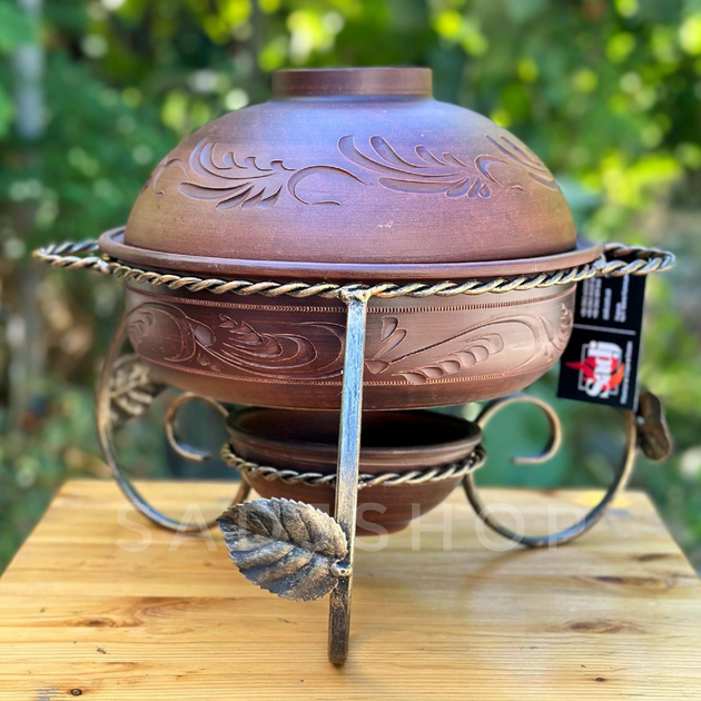 Садж блюдо для подачі шашлика Вітой з глиняним посудом Пловниця 2,5л база