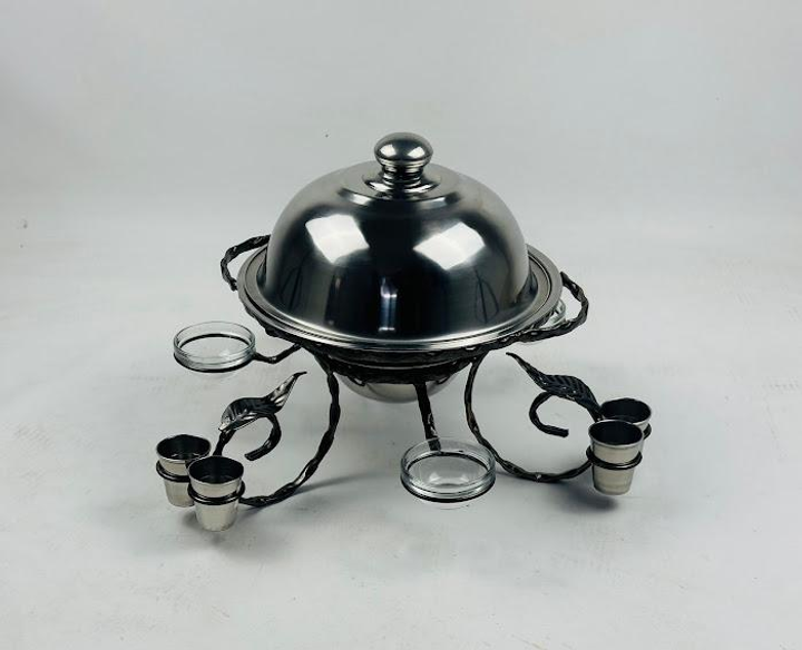 Садж для подачі та підігріву шашлику посилений з кришкою з нержавіючої сталі 28 см з чарками та соусниками (151-10-SJ-6584)