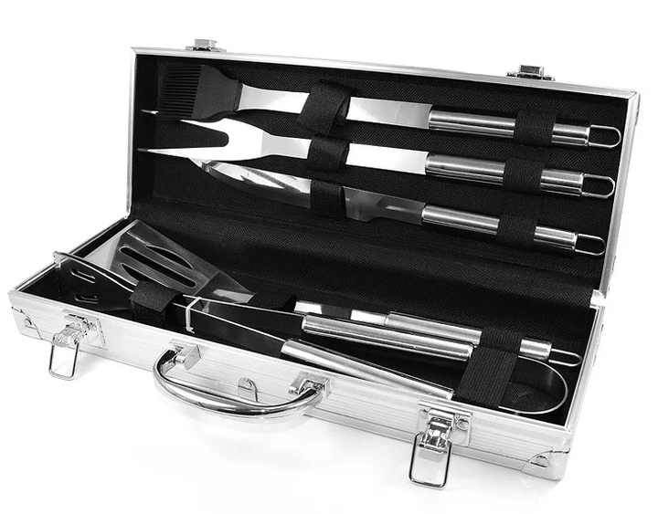 Набір аксесуарів для барбекю мангалу гриля в кейсі з нержавіючої сталі 37х13х7см BBQ Tools Set