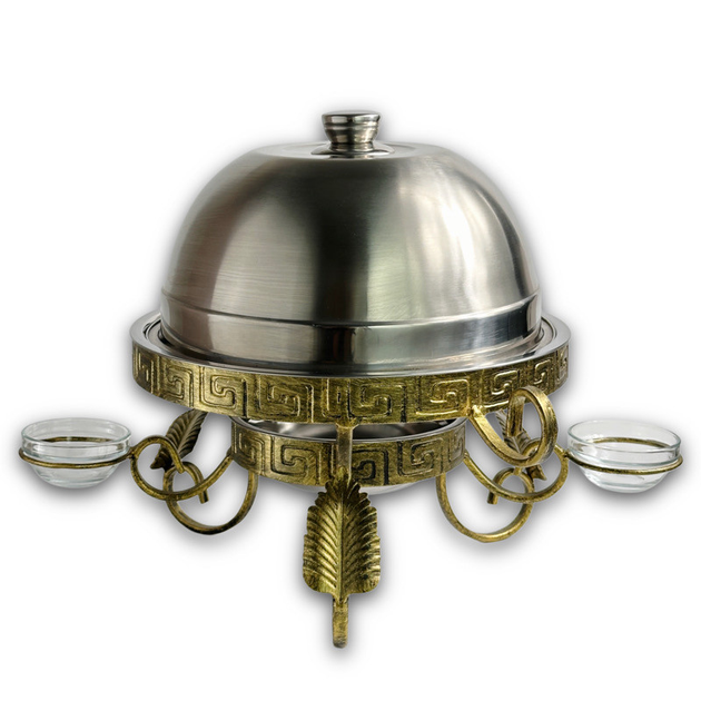Садж для подачі та підігріву шашлику з кришкою 36 см з соусницями та чарками SJ-6567 посилений нержавіюча сталь (83-10-6567)