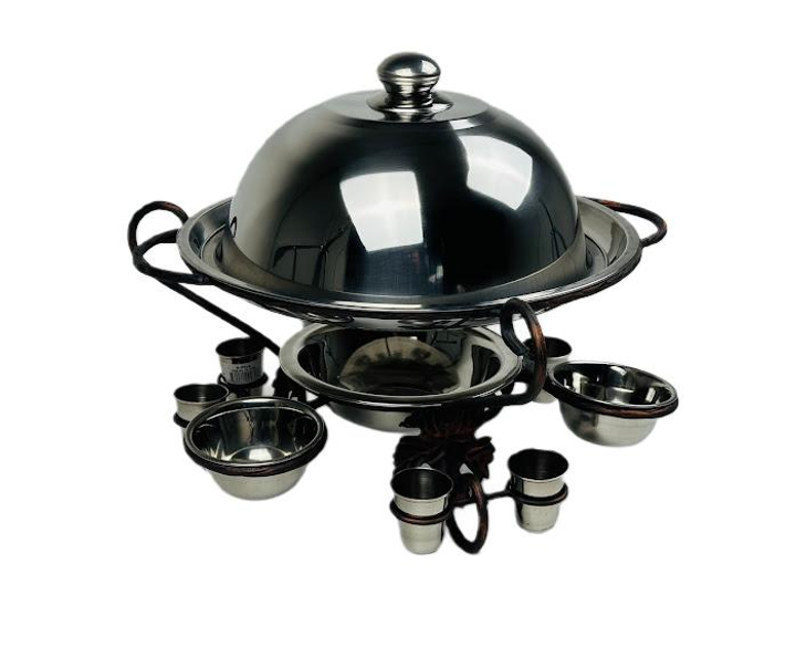 Садж VIP із соусницями та чарками нержавіюча сталь 36 см для м'яса 13 предметів (80-10-SJ-6570)
