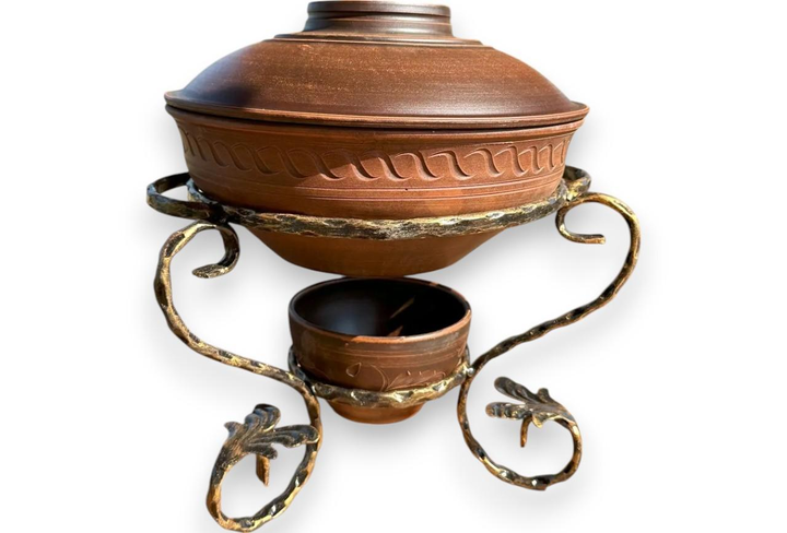 Металева підставка для підігріву м'яса Садж Глинка з глиняною тарілкою на 5 л Коричнева (120-89-5-1)