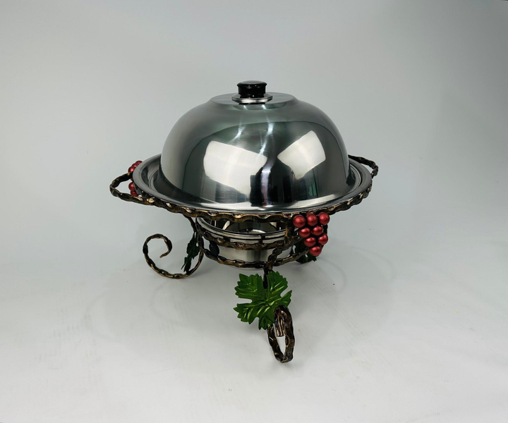 Садж для подачі та підігріву шашлику Виноград з кришкою з нержавіючої сталі 36 см на підставці Сріблястий (127-10-SJ-6573)