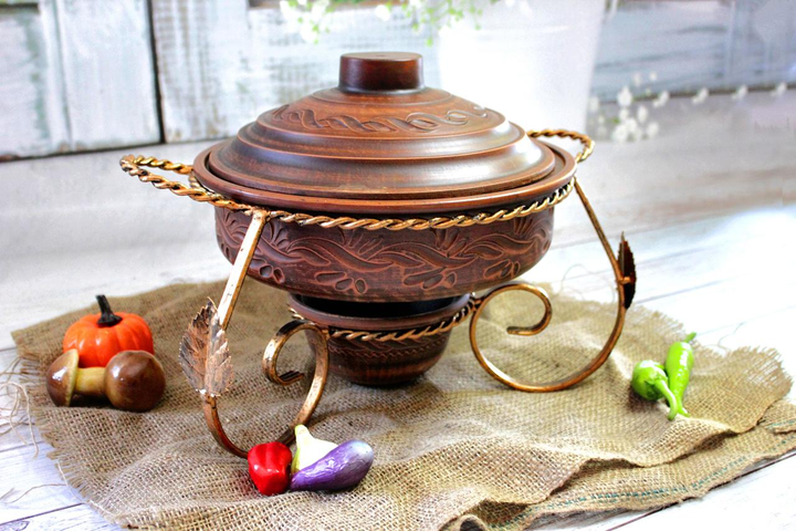 Садж для подачі шашлику Керамклуб із сковородою із червоної глини 3 л