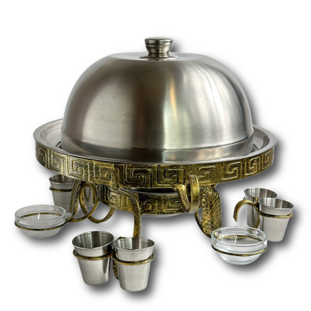 Садж із соусницями Глінка 35-2 металевий із глиняною тарілкою та кришкою на 3.5 л Коричневий (120-89-35-2)