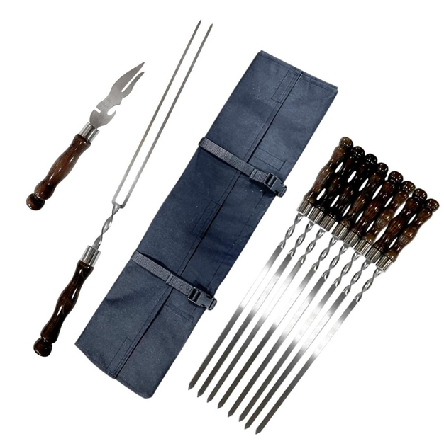 Чохол з набором шампурів (8 шт) з виделкою-ножем та подвійним шампуром, нержавіюча сталь 3 мм