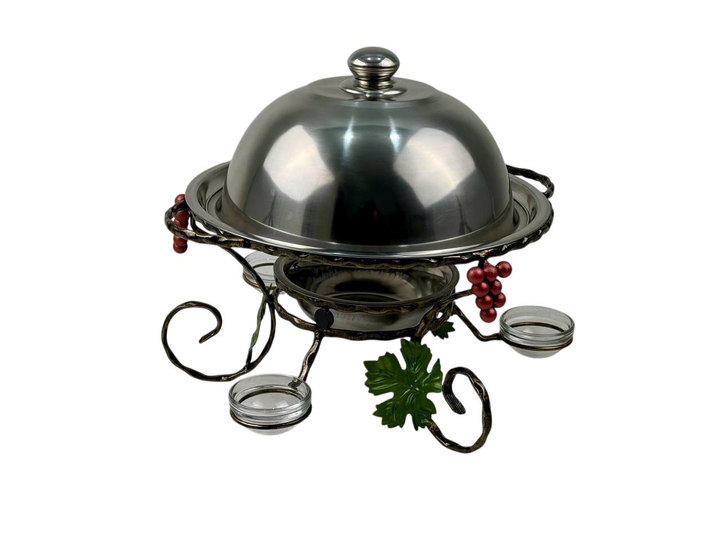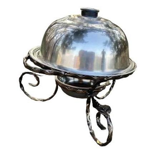 Садж для подачі шашлику із нержавіючої сталі з соусницями та кришкою 36 см Сталевий (21-10-SJ-6587)