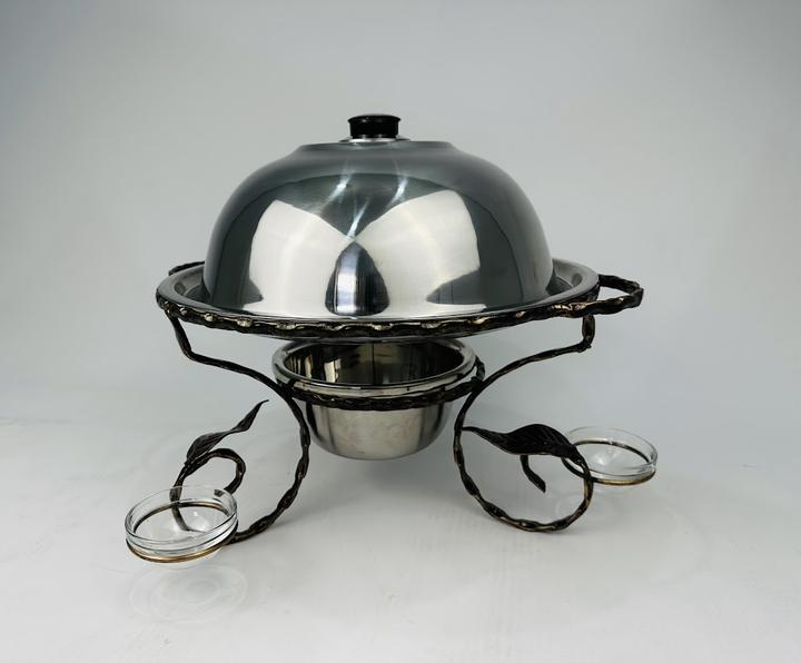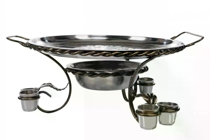 Садж кований 40 см з соусницями для подачі шашлику ручної роботи з нержавіючої сталі срібний (33-89-СА 40-01)