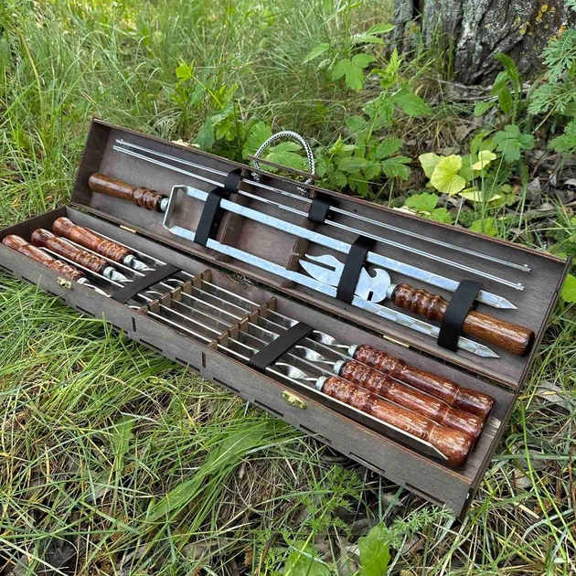 Подарунковий комплект шампурів "Дачний сезон" ручної роботи Шашличний набір шампурів у чохлі