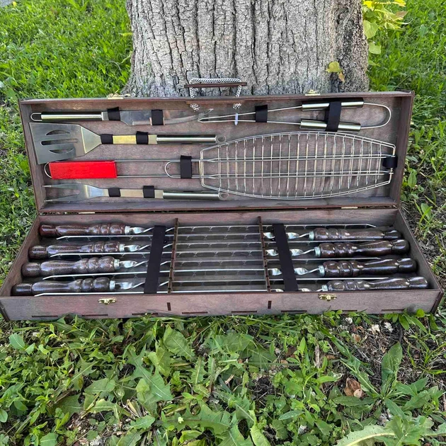 Подарунковий комплект шампурів "BBQ Ukraine" ручної роботи в чохлі (NB-2237)