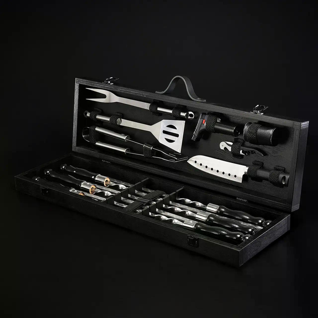 Подарунковий шашличний набір для гриля на відпочинок "Grills G12" Чорний 6 шампурів