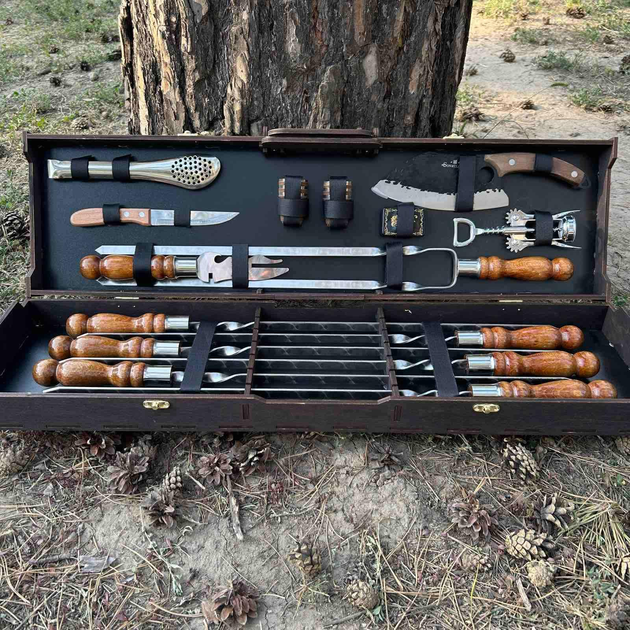 Набір для гриля та барбекю Moltis MT-10542 Темний у дерев’яному кейсі