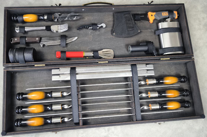 Набір у дерев'яному кейсі Шашличний Лайт для пікніка ручної роботи шампура та аксесуари (80-10-KS-7509)