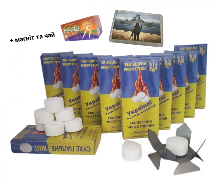 Пальне сухе 100 уп. пальник 5шт, сухий спирт (8 табл) + магніт та чай у подарунок К-Th0313/100G-Ак