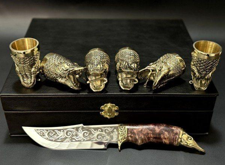 Набор "Царский улов" R 6 рюмок с ножом в кейсе