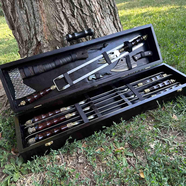 Набір ТОТЕМ МИСЛИВЦЯ Кейс Дерев'яний кейс Для Грилю Пікніка Мангалу N179 11 предметов
