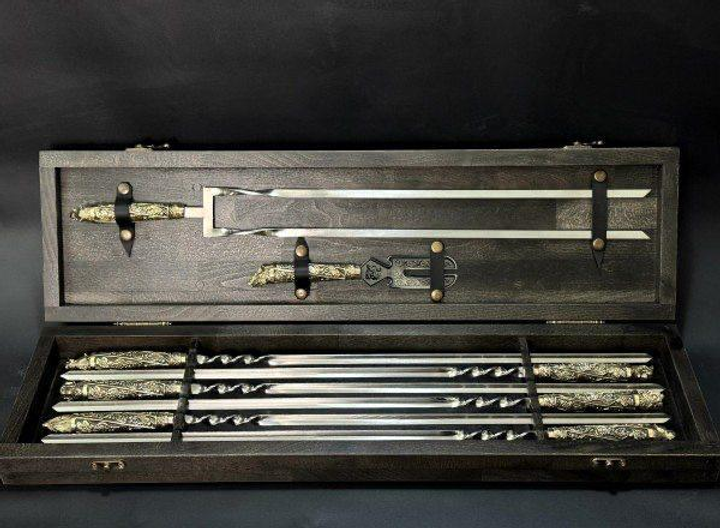Подарунок набір шампурів Магнат Світлий кейс 720х120х330 мм Metalzavod