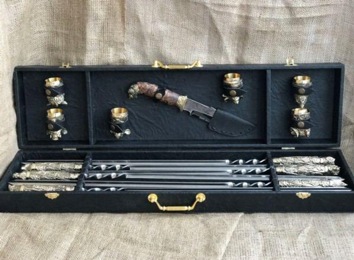 VIP-Набір кутових металевих шампурів лиття "Дикі звірі" R в подарунковому кейсі
