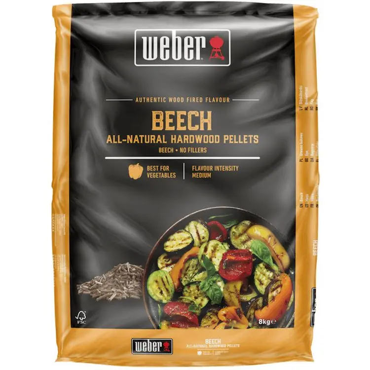 Заповніть бункер вашого пелетного гриля гранулами з бука — 100% натуральної деревини, щоб надати стравам димного смаку з земляним, горіховим і злегка солодким відтінком. Бук ідеально поєднується з овочами, куркою та рибою. Спробуйте наступного разу, коли готуватимете повільно й ароматно. Особливості: Гранули виготовлені зі 100% натуральної деревини без домішок. Мають середню інтенсивність смаку, що робить їх універсальним вибором для різних страв. Профіль смаку включає земляні, горіхові та злегка солодкі нотки. Чудово підходять до овочів, курятини та риби. Сумісні з пелетними грилями Weber, а також із грилями інших брендів.