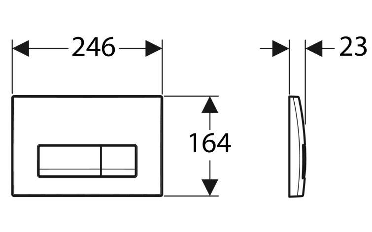 Клавіша змиву Geberit Delta 50 (пластик матовий хром) 115.119.46.1 Артикул: 115.119.46.1 Виробник: Geberit Колекція: Delta Країна виробник: Швейцарія Колір: хром матовий Матеріал: пластик Тип монтажу: вертикальний Призначення: для прихованого бачка унітазу Підходить: для роботи із системою подвійного змиву Комплектація: 1) Монтажна рамка 2) 2 робочі стрижні 3) Кріпильні елементи розміри: Глибина, див: 2.3 Ширина, см: 24.6 Висота, см: 16.4