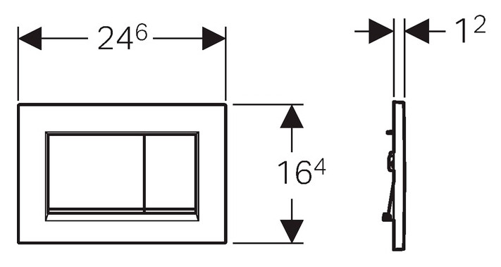 Бренд: Geberit ; Тип товару: Панель із кнопками; Призначення: Для унітазу; Висота (мм): 164; Ширина (мм): 246; Розташування клавіші: Фронтальне; Режим зливу: Подвійний; Управління зливом: Механічна; Матеріал: Пластик; Виробник: Швейцарія