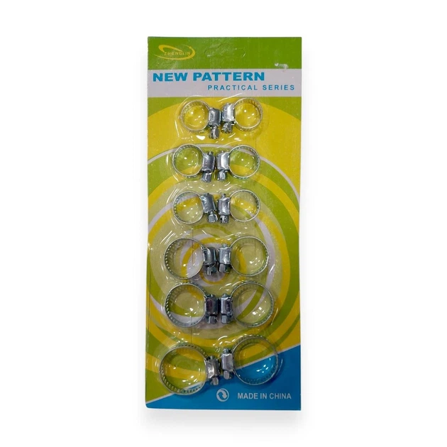 Набір хомутів черв'ячних металевих оцинкованих 12 шт. різного діаметра